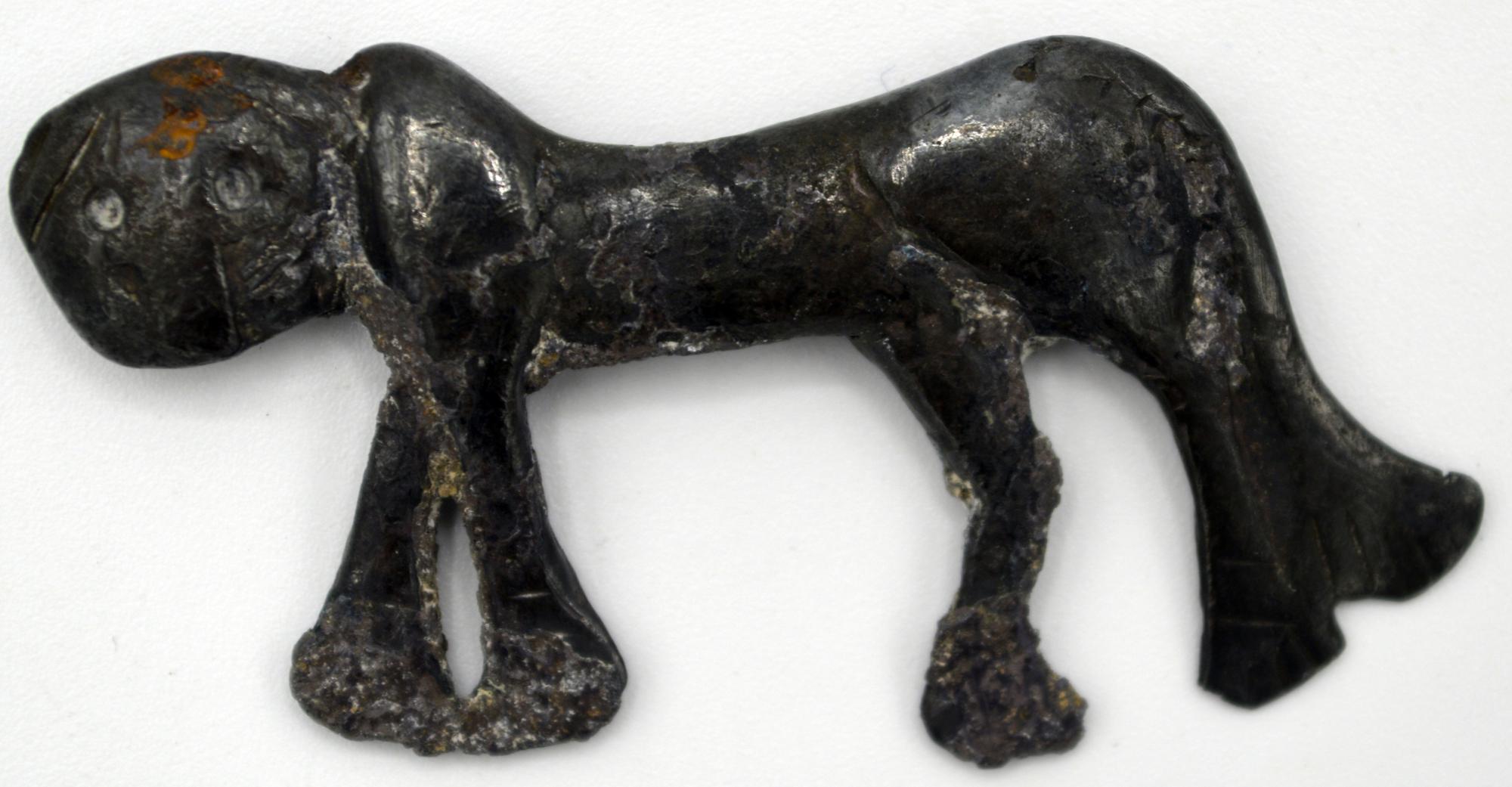 Piccola scultura raffigurante un felino stilizzato, forse una leonessa, gradiente a sinistra con la coda fra le gambe.