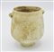 Olletta con orlo diritto, corpo troncoconico rastremato in basso, piede a disco; due piccole anse a presa verticali sotto l'orlo.