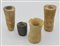 Due idoli a pilastro di forma a colonna subcilindrica e due colonnine, una in pietra nera ed una in terracotta con incavo nella parte superiore, utilizzate probabilmente come lucerne.