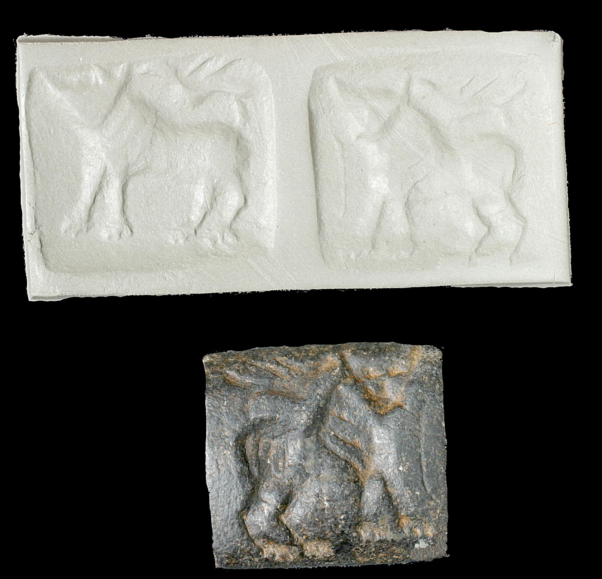 Sigillo a stampo con la raffigurazione di un toro gradiente a destra.
