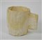 Tazza di forma troncoconica, con ansa rettangolare verticale, scolpita in calcare bianco e non finita.