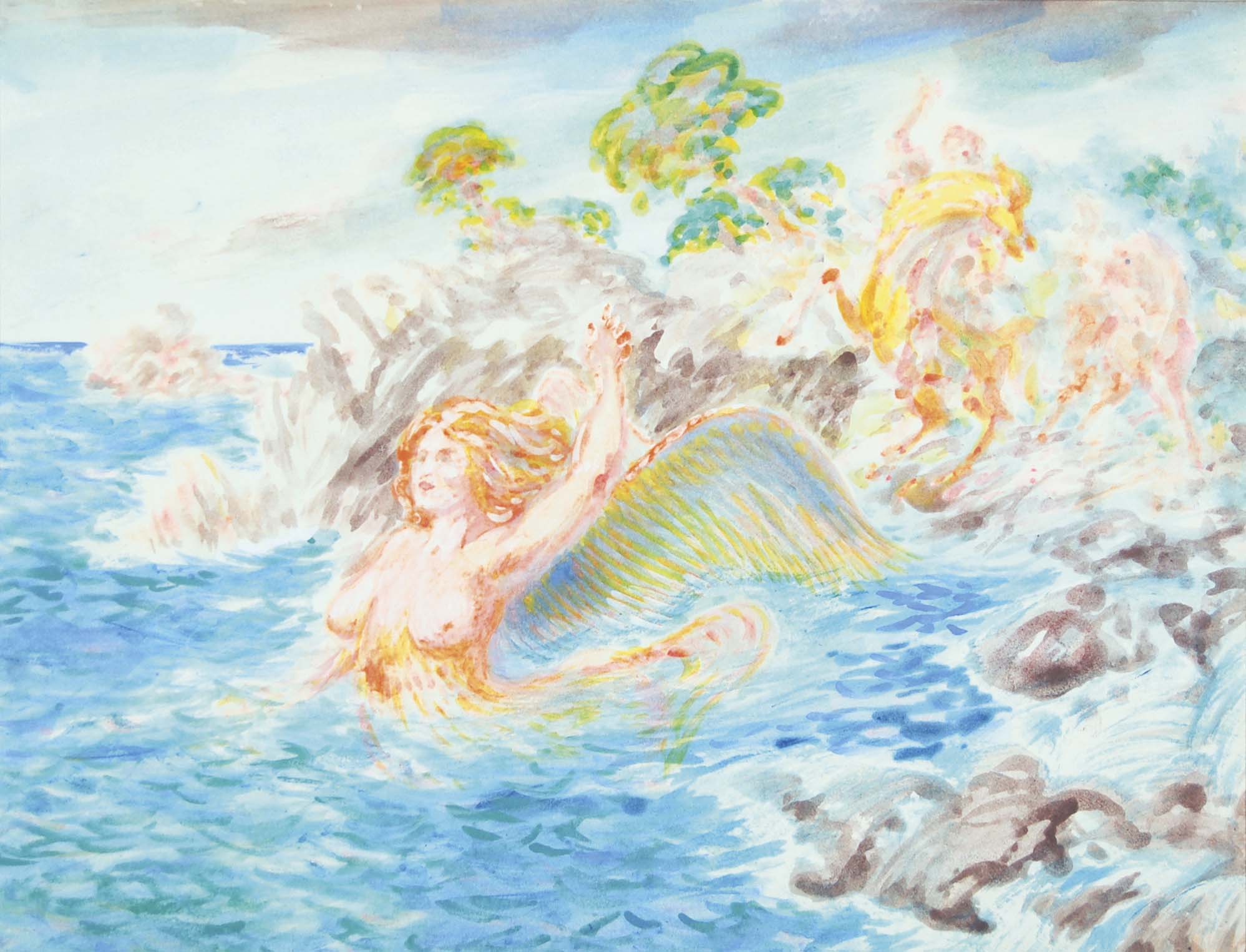 SASSU ALIGI Milano 1912 - 2000 Sirena alata 1985 acrilici e acquerelli su...