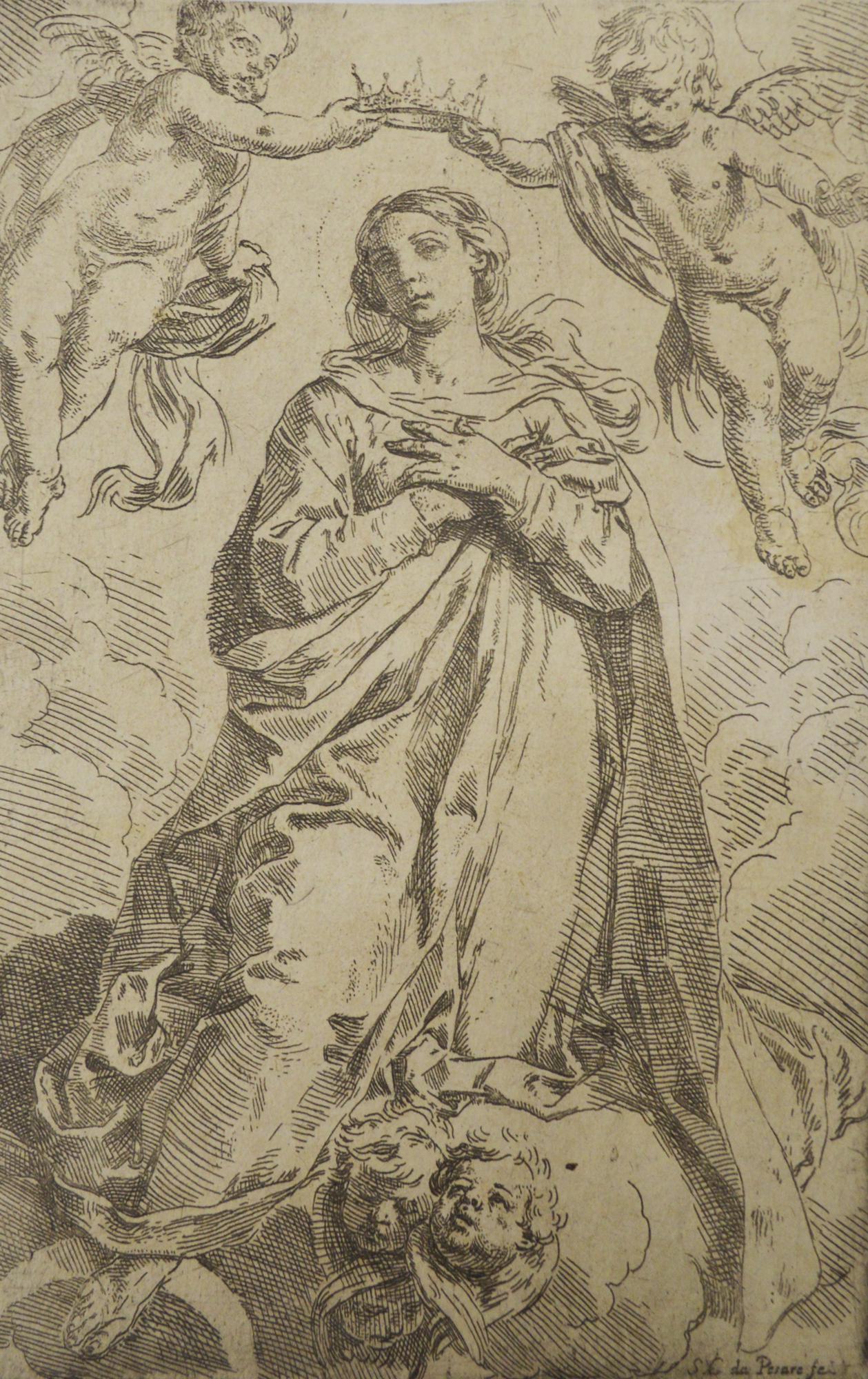 Lotto 96 | Simone Cantarini LA VERGINE INCORONATA acquaforte, foglio cm 21x13,8 firma in...