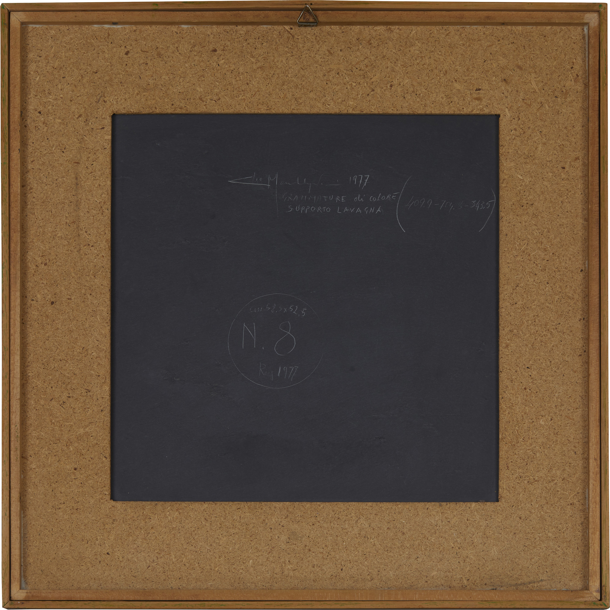 Firma, data, misure, n. registro e titolo sul retro