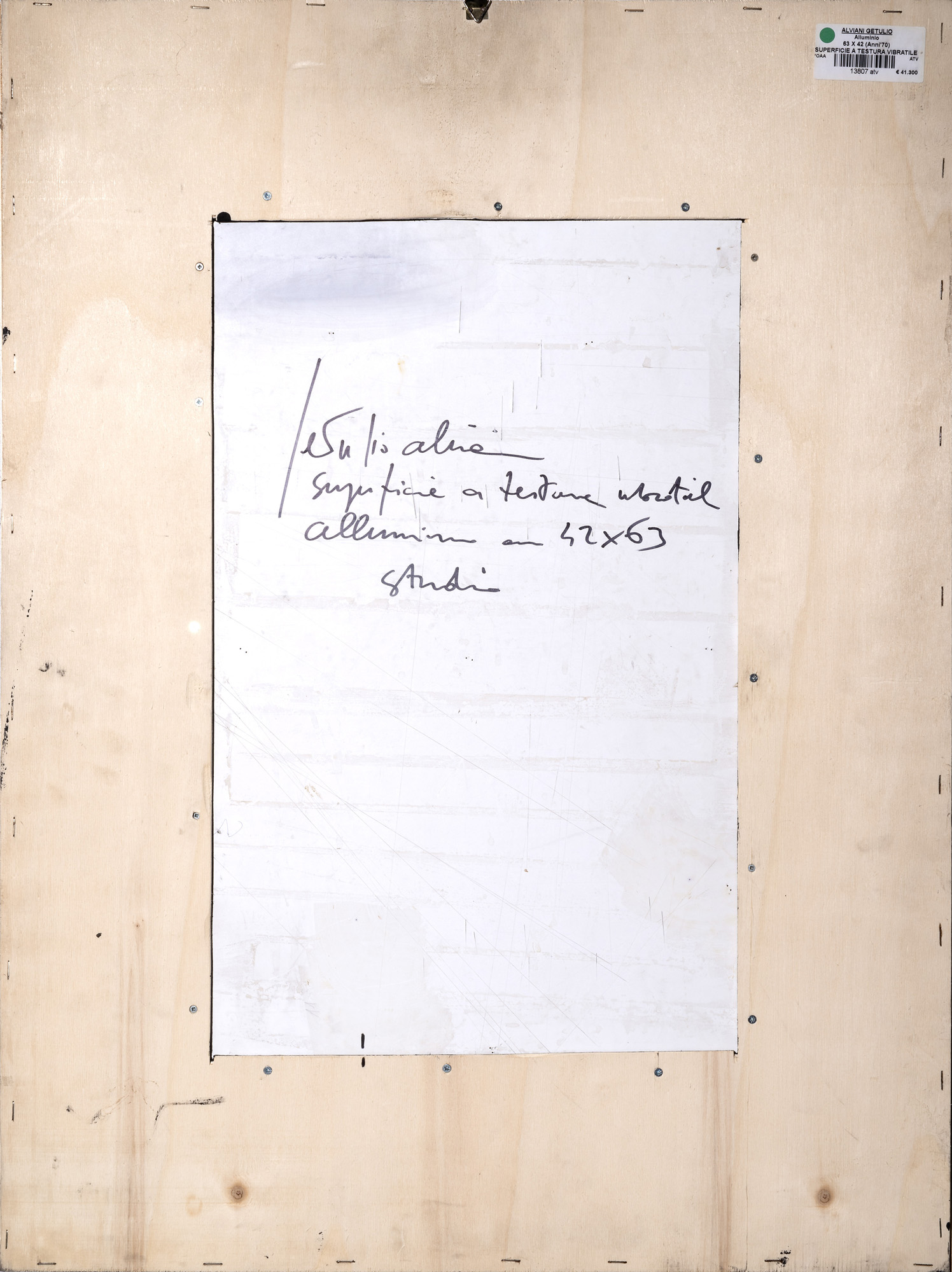 L'opera è in fase di archiviazione presso il Centro Studio Archivio e Ricerche Getulio Alviani, Milano.