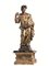 scultura lignea policroma e dorata con piccola base in legno moderna, alt. cm 57, appoggiata su una base in marmo sbrecciato nero su base a forma di plinto in legno dorato e intagliato a motivo di palmette e conchiglie, cm 17x30,5x26,5