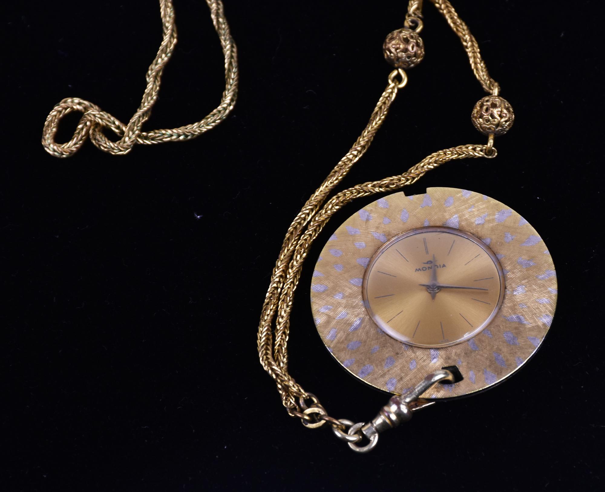CATENA IN METALLO DORATO CON OROLOGIO marca Mondia a forma di disco volante...