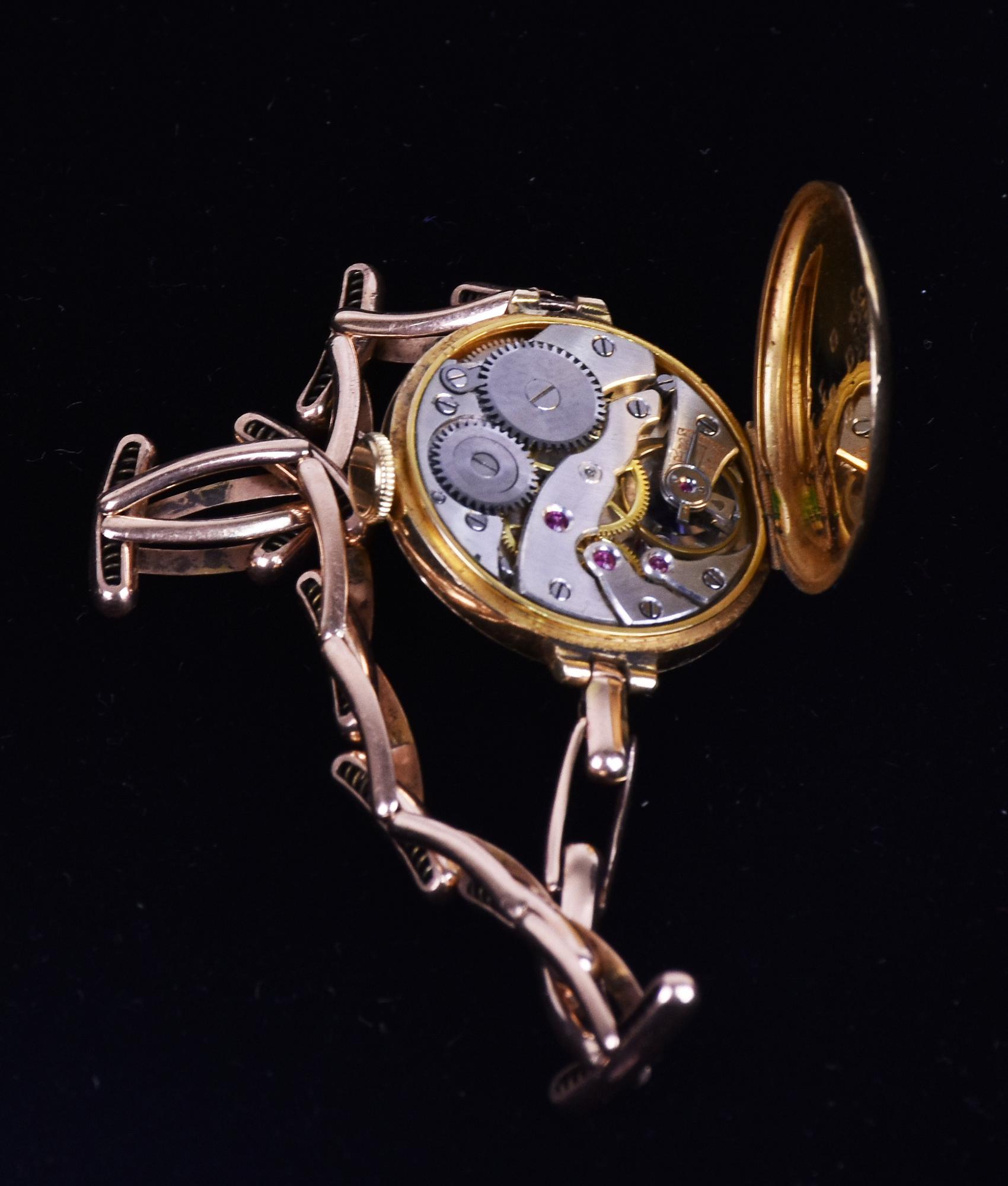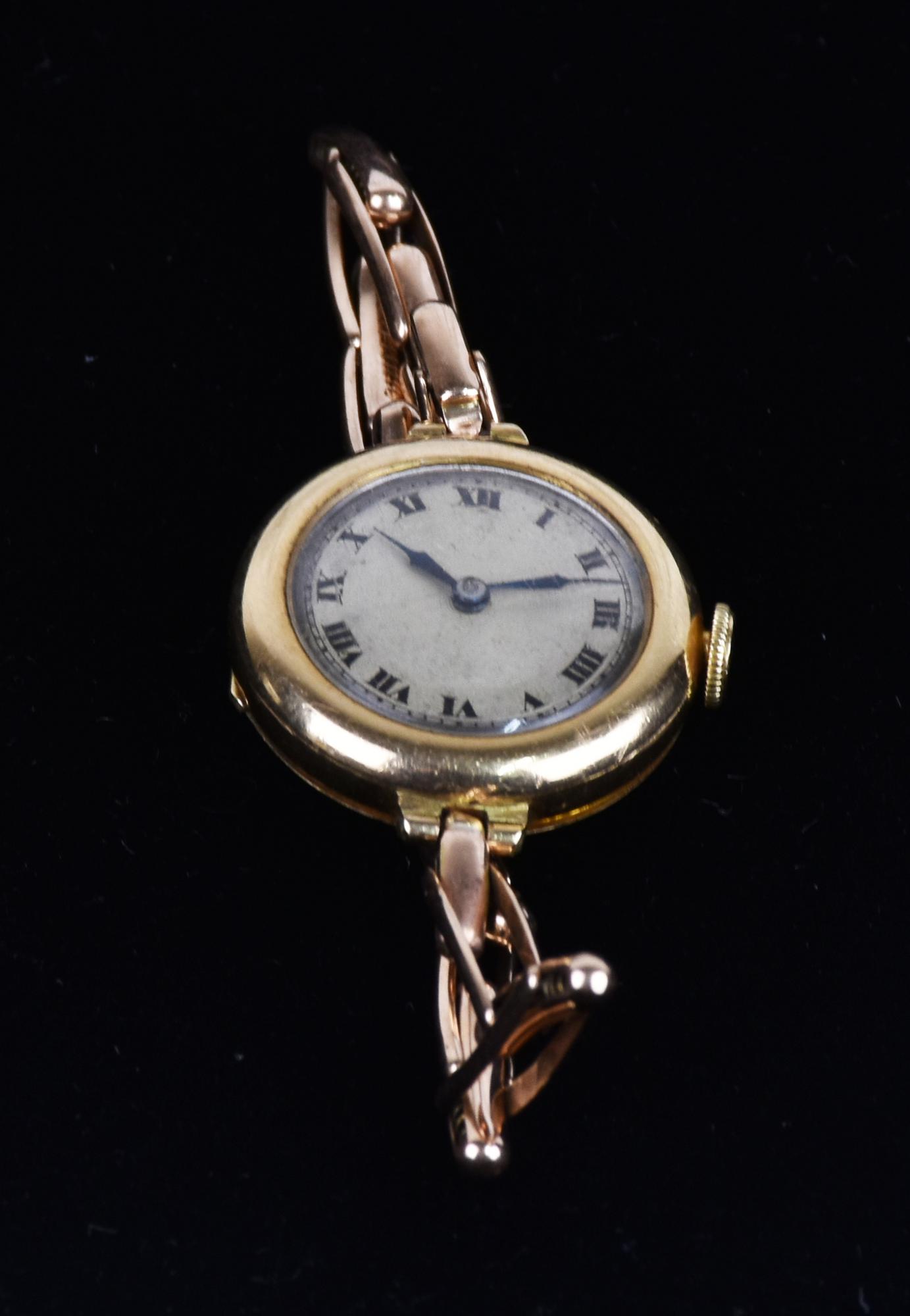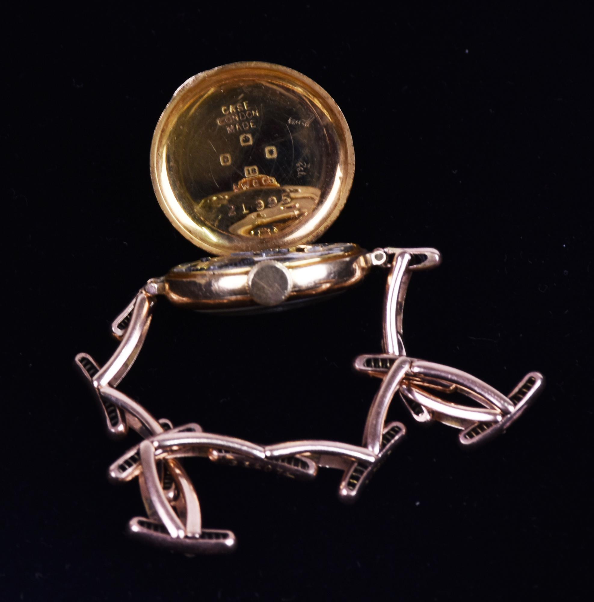 cassa in oro 18k marca LWC Co. London Watch Case Company, punzoni dell'oro citta' di Londra anno 1919, meccanismo a carica manuale, quadrante argente' con numerazione romana, lancette in acciaio brunito e bracciale in oro a bassa caratura