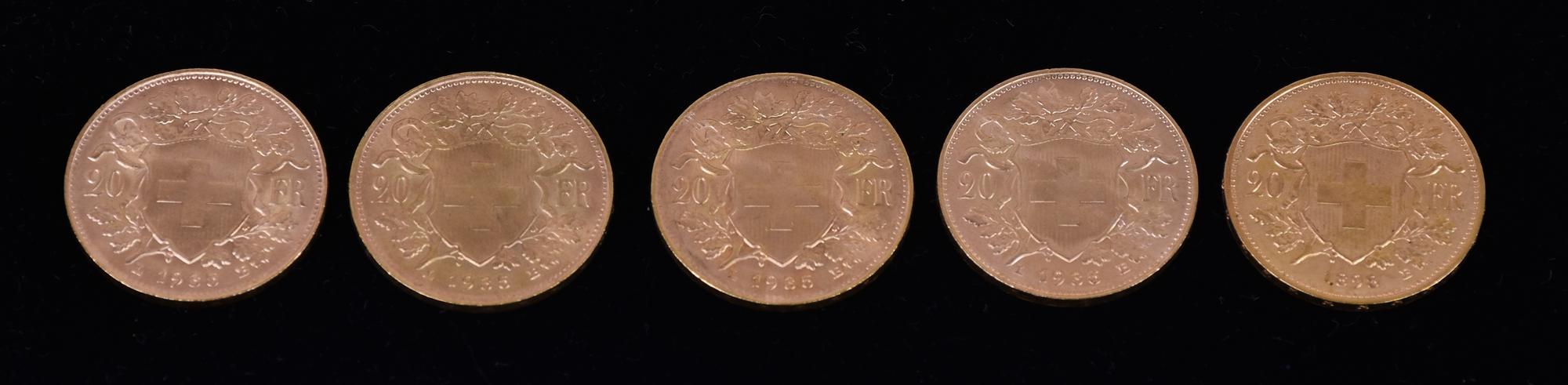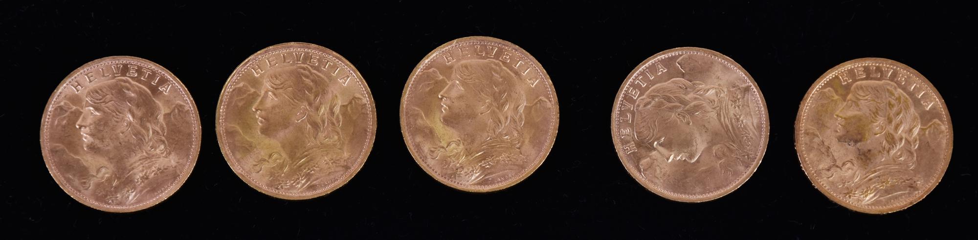 LOTTO DI 5 MARENGHI SVIZZERI IN ORO