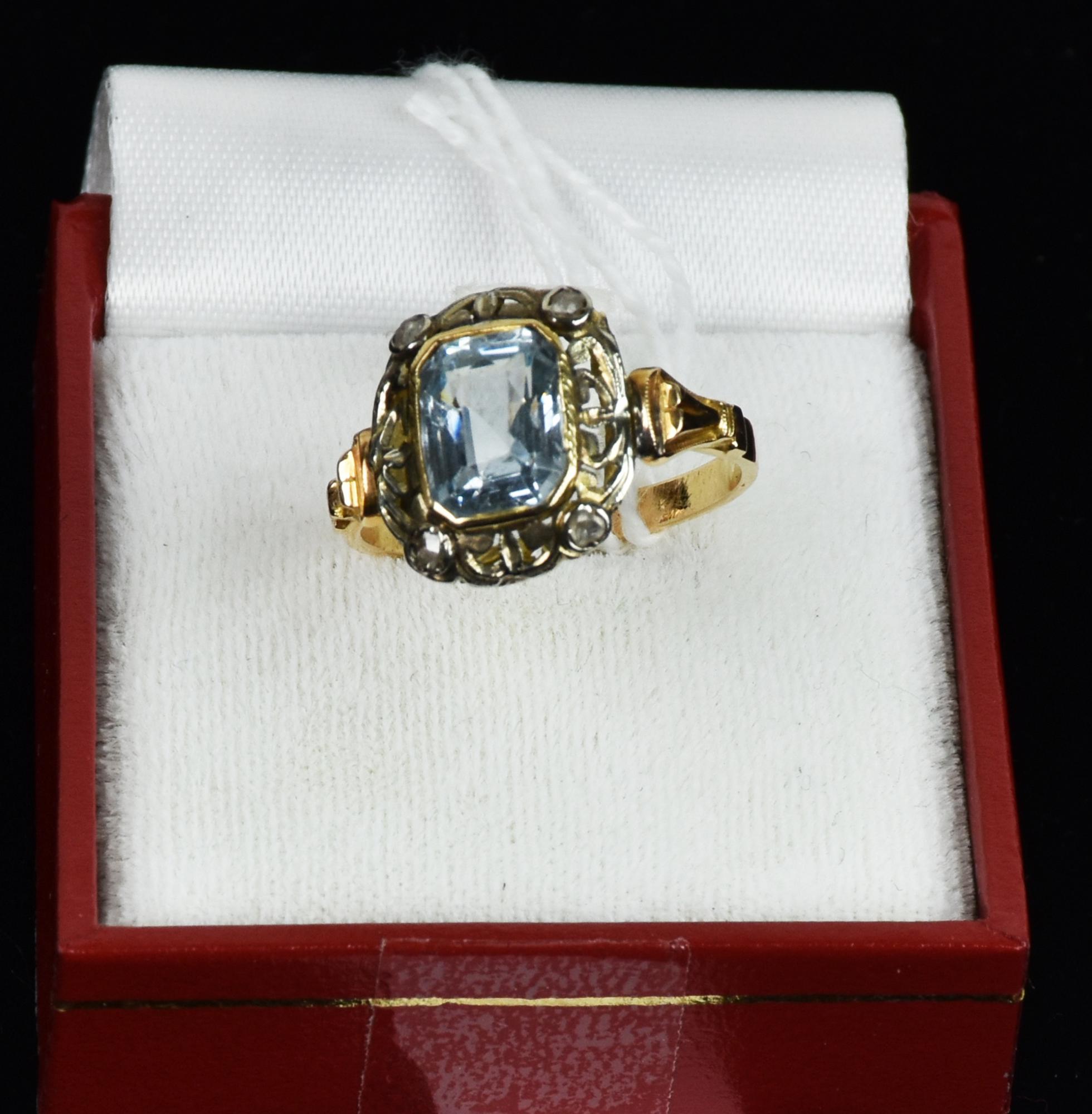 ANELLO IN ORO GIALLO E BIANCO con berillo varieta' acquamarina contornato da...