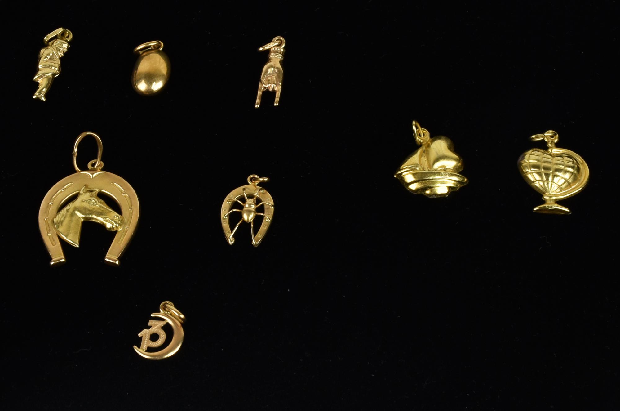 LOTTO DI 8 CHARMS di cui 6 in oro giallo e 2 in argento dorato 925...