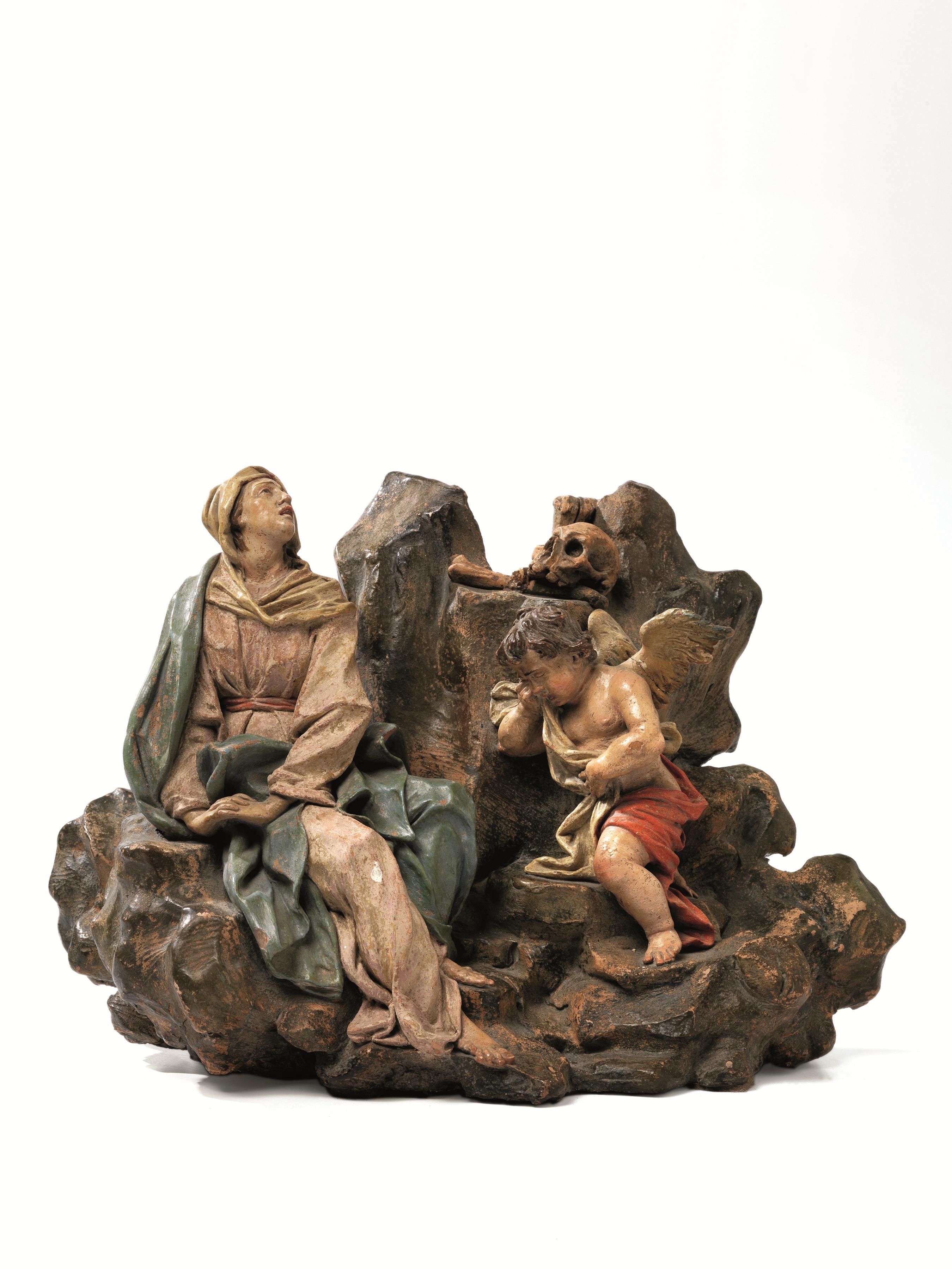 gruppo in terracotta policroma, alt. cm 25