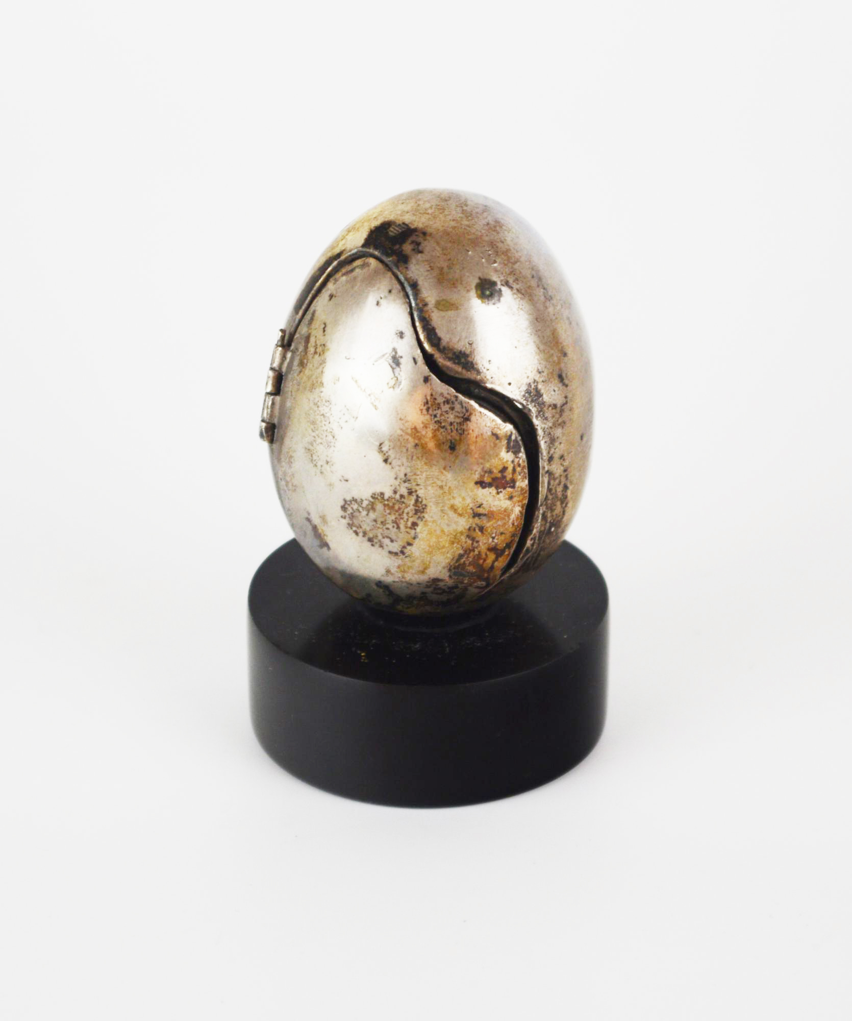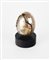 scultura in metallo argentato su base in pietra nera, cm 8x8x5; es. 6/30