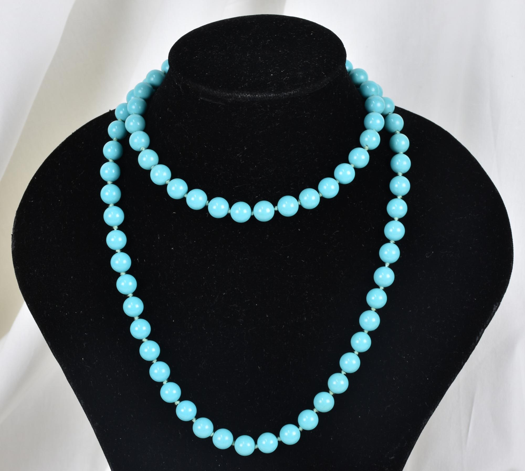 COLLANA IN TURCHESE lunghezza cm 90 diam mm 10