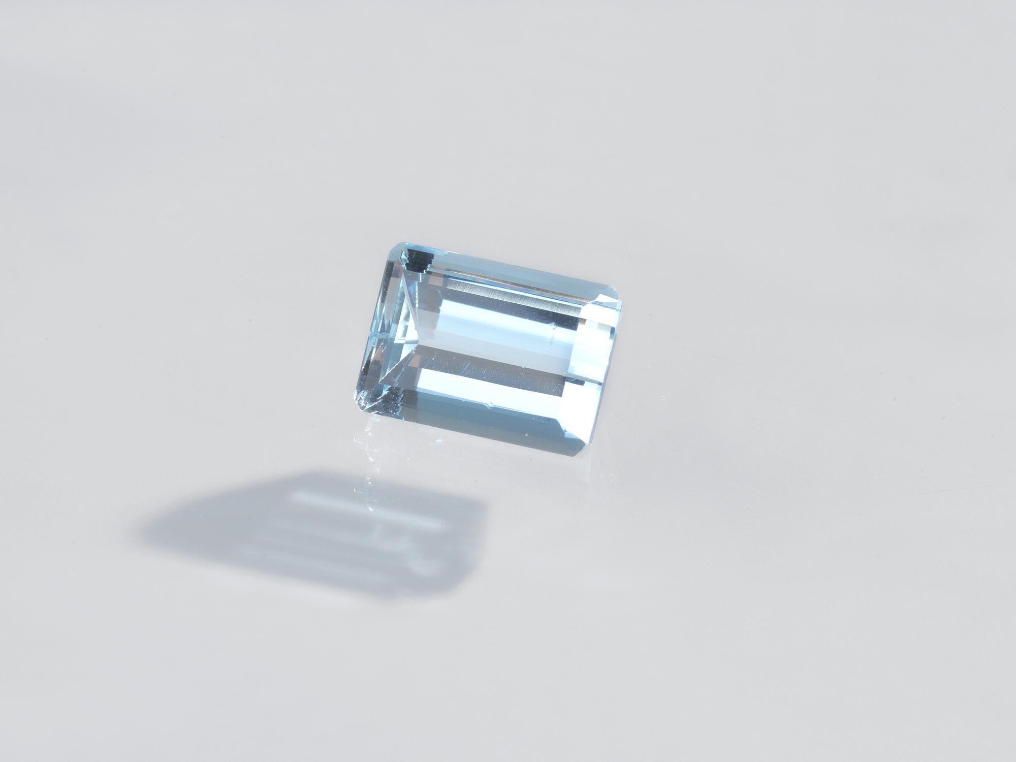 ACQUAMARINA CT 8.72 di forma rettangolare ad angoli tronchi, taglio a gradini...