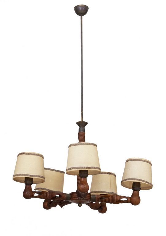 Lotto 3001 | UN LAMPADARIO, anni '30<br>Legno di rovere tinto