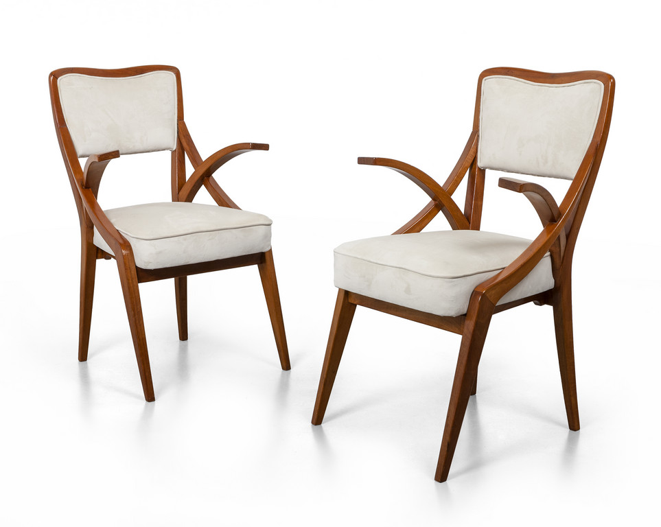 DUE POLTRONCINE, anni '50. <br>Legno di noce,