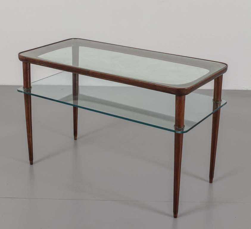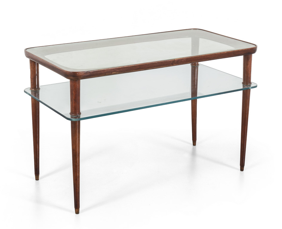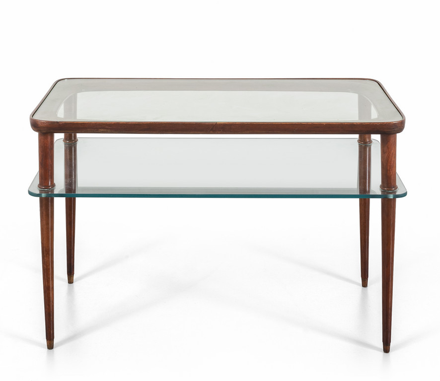 UN TAVOLINO, anni '50. <br>Legno di mogano,