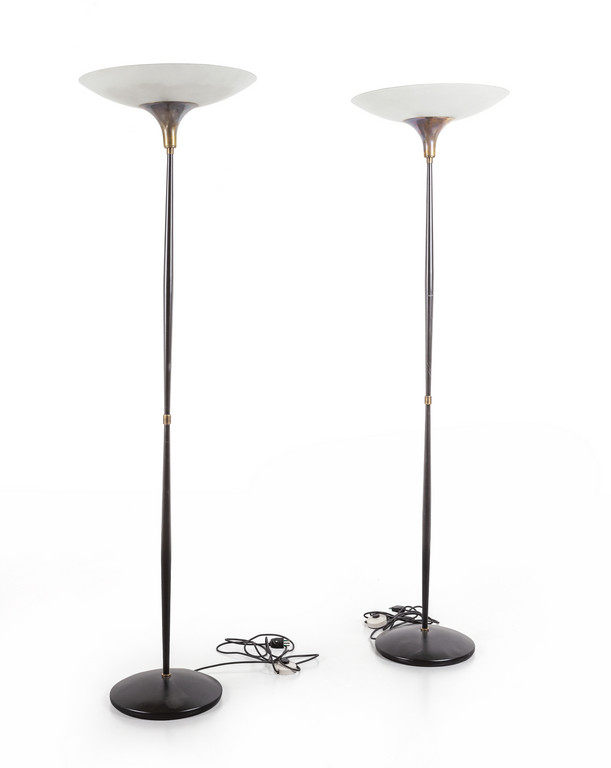 DUE LAMPADE DA TERRA, anni '50. <br>Acciaio