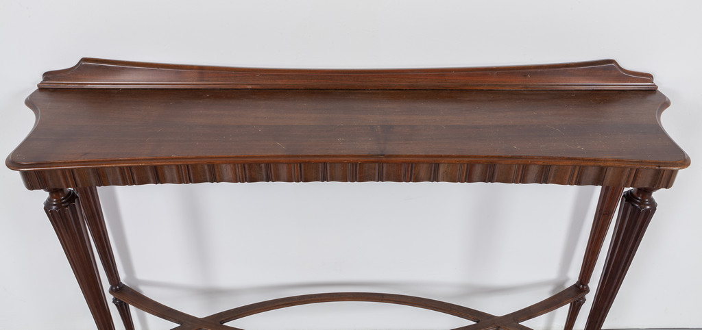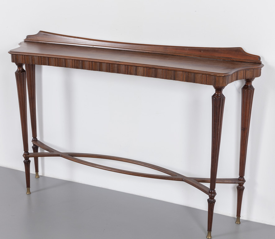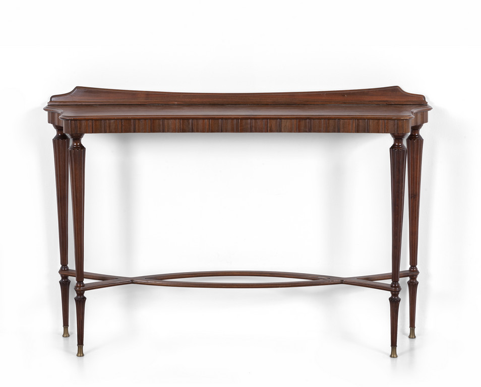 UNA CONSOLE, anni '50. <br>Legno di noce, ottone.