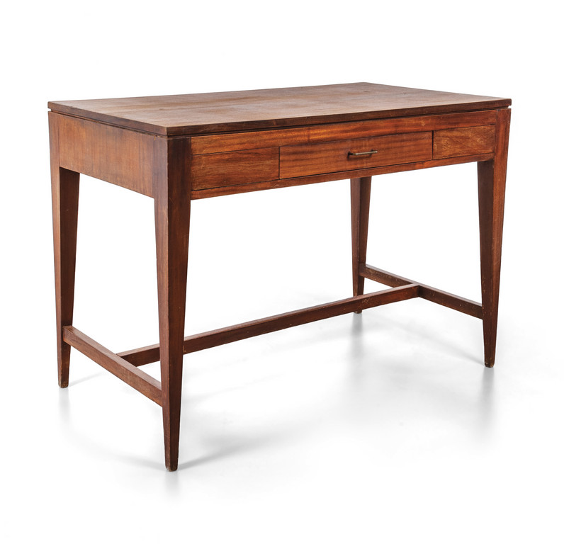 UNA SCRIVANIA, anni '50. <br>Legno di mogano,