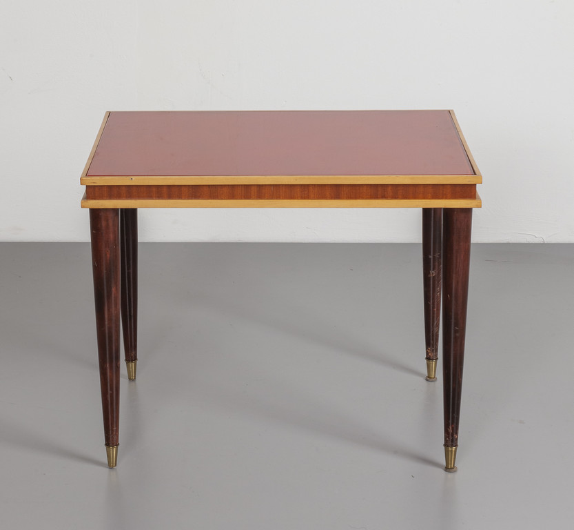 UN TAVOLINO, anni '50. <br>Legno naturale e tinto
