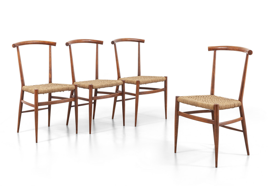 QUATTRO SEDIE, anni '50. <br>Legno di faggio