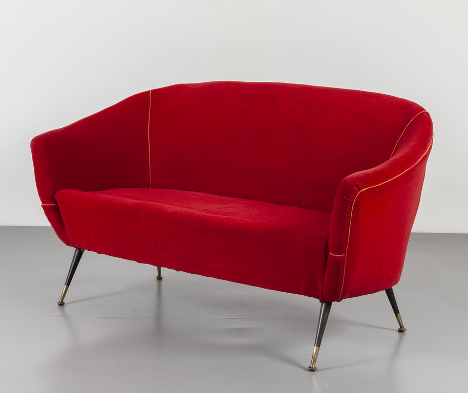 Lotto 3166 | UN DIVANO, anni '60. <br>Struttura in legno,