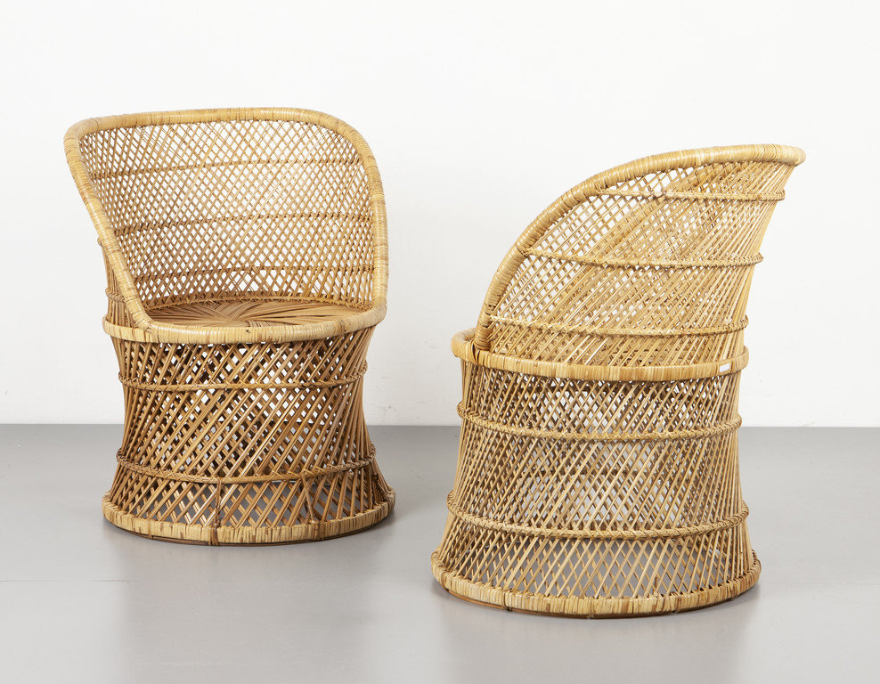 DUE POLTRONE IN VIMINI, anni '60. <br>Altezza cm