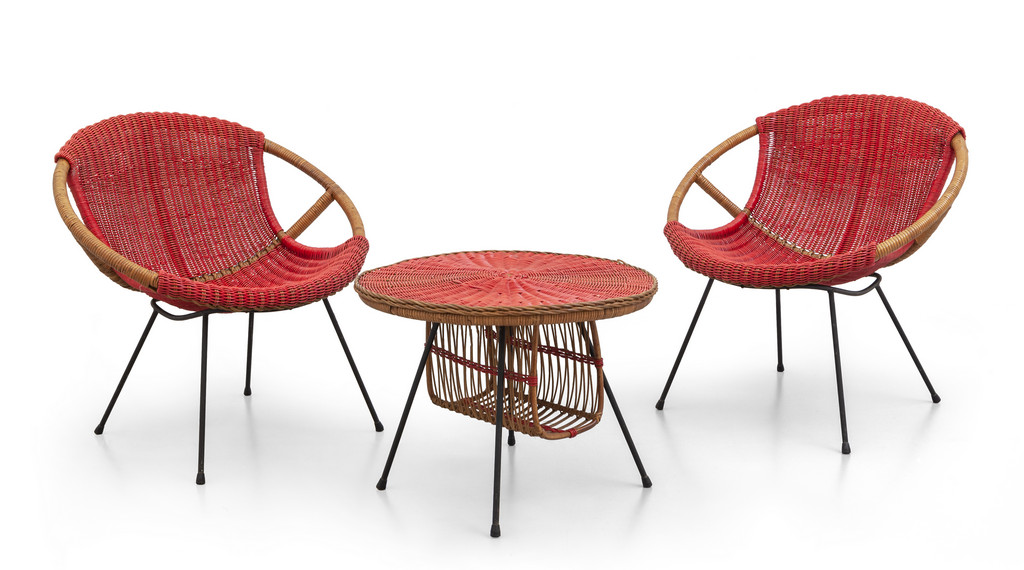 DUE POLTRONCINE E UN TAVOLINO, anni '60.
