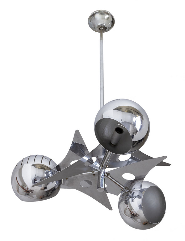 UNA LAMPADA A SOSPENSIONE, anni '60. <br>Acciaio