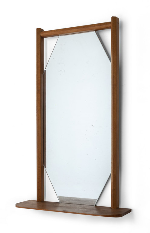 UNO SPECCHIO DA PARETE, anni '60. <br>Legno di