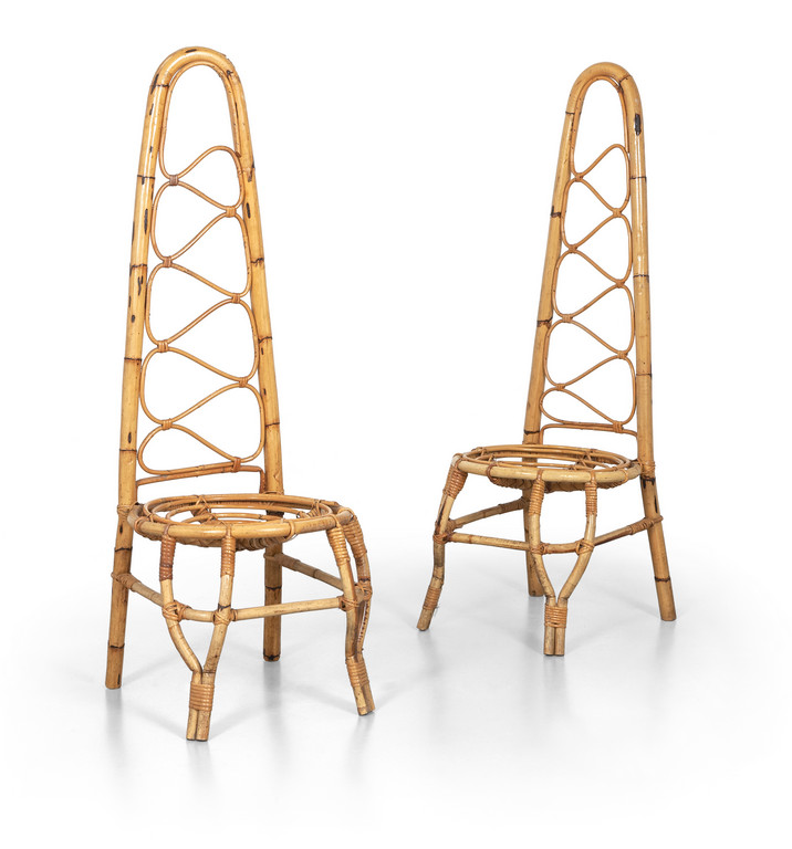 DUE SEDIE, anni '60. <br>Malacca, giunco e canna