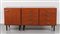Acciaio tubolare verniciato, piedini regolabili di ottone, legno impiallacciato in teak.