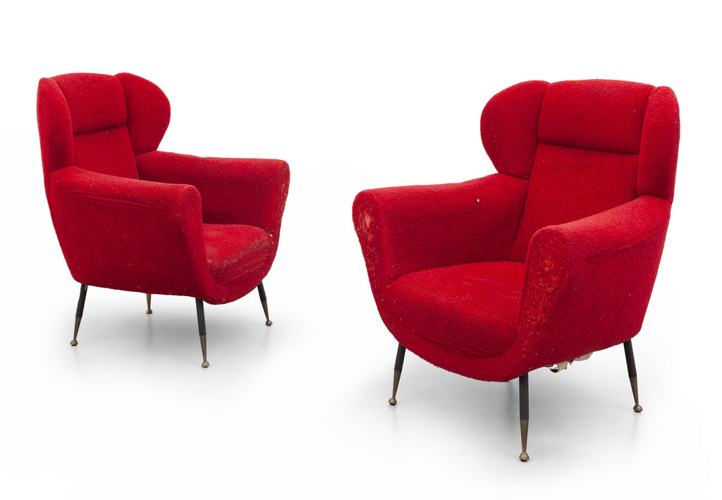 DUE POLTRONE, anni '60. <br>Struttura in legno,