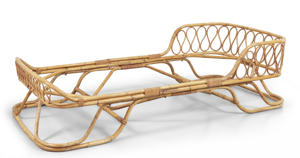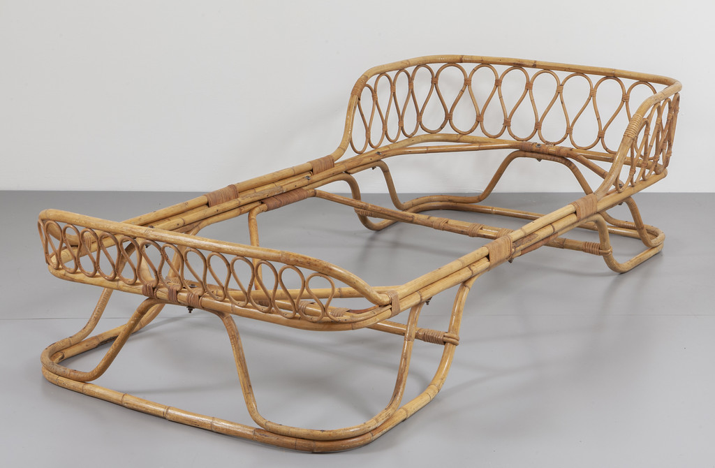 UN LETTO, anni '60. <br>Malacca, giunco e canna