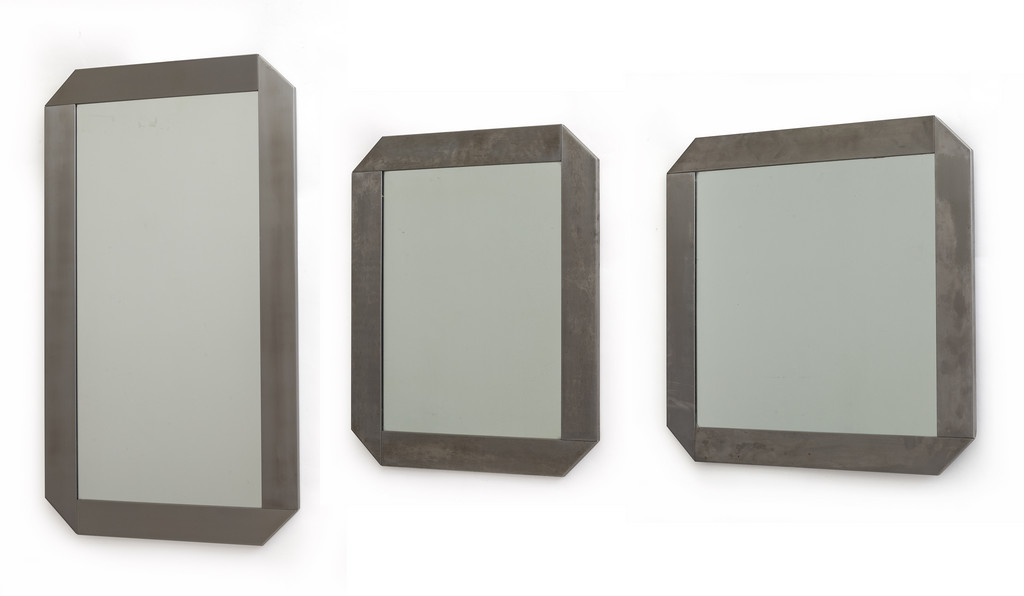 TRE SPECCHI DA PARETE, anni '70. <br>Acciaio