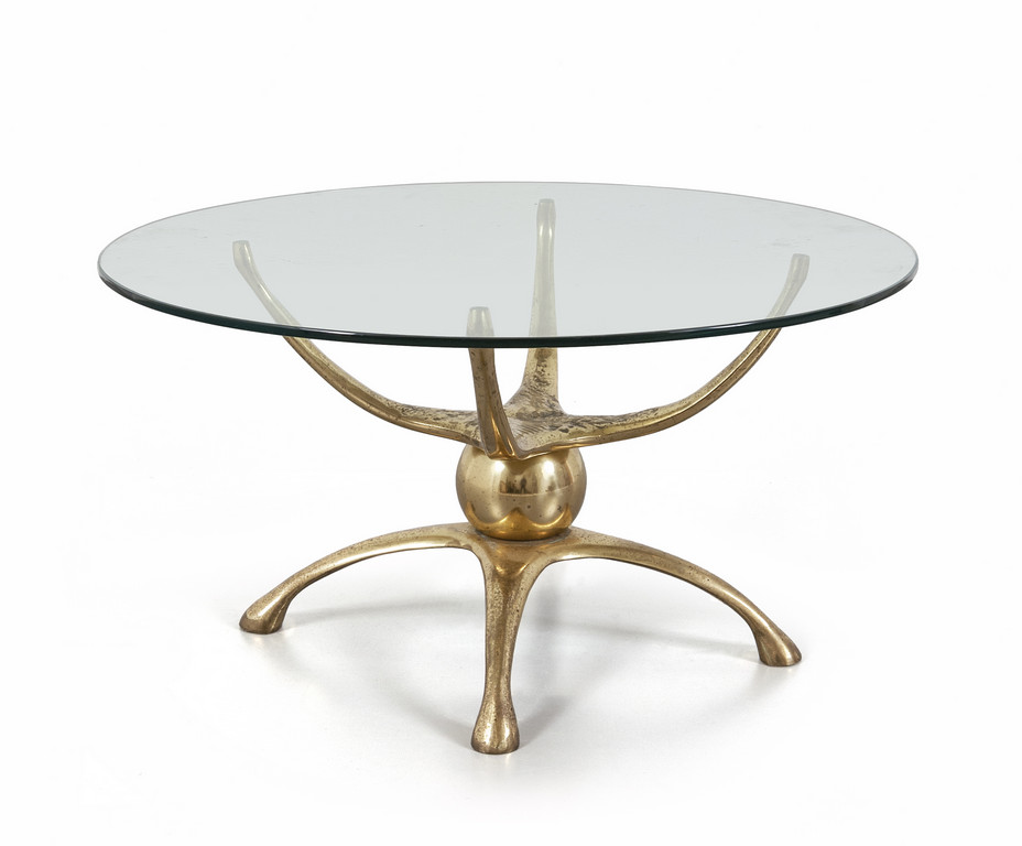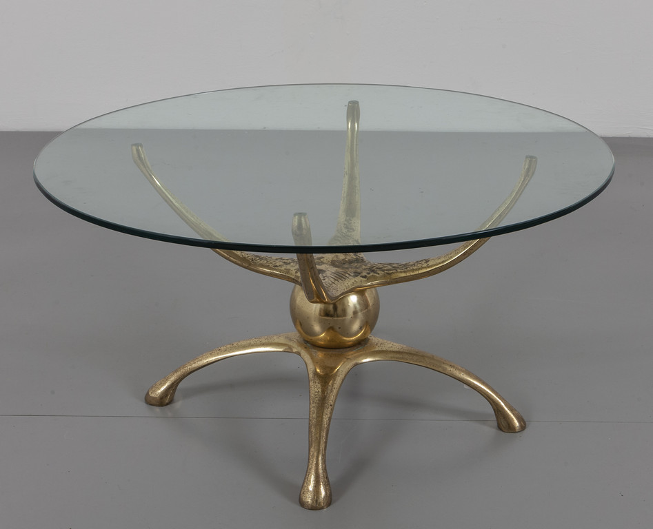 UN TAVOLINO, anni '70. <br>Fusione di ottone,