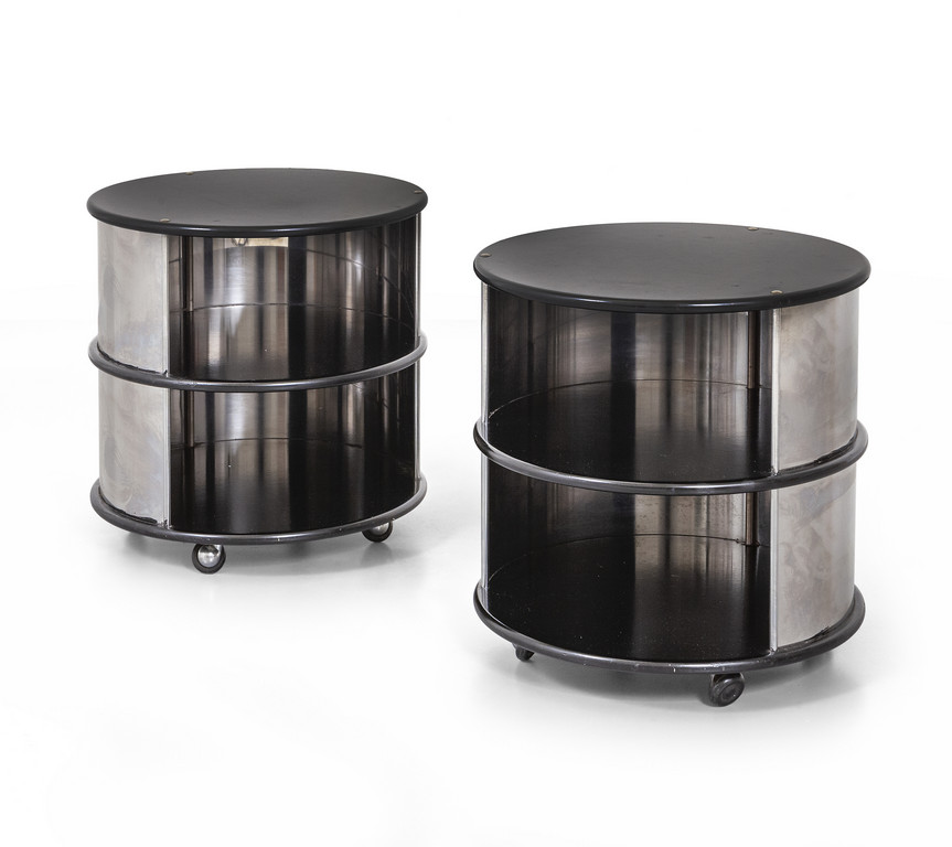 DUE COMODINI SU ROTELLE, anni '70. <br>Legno