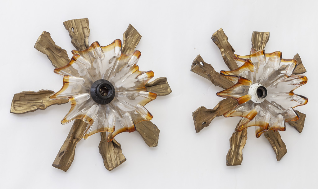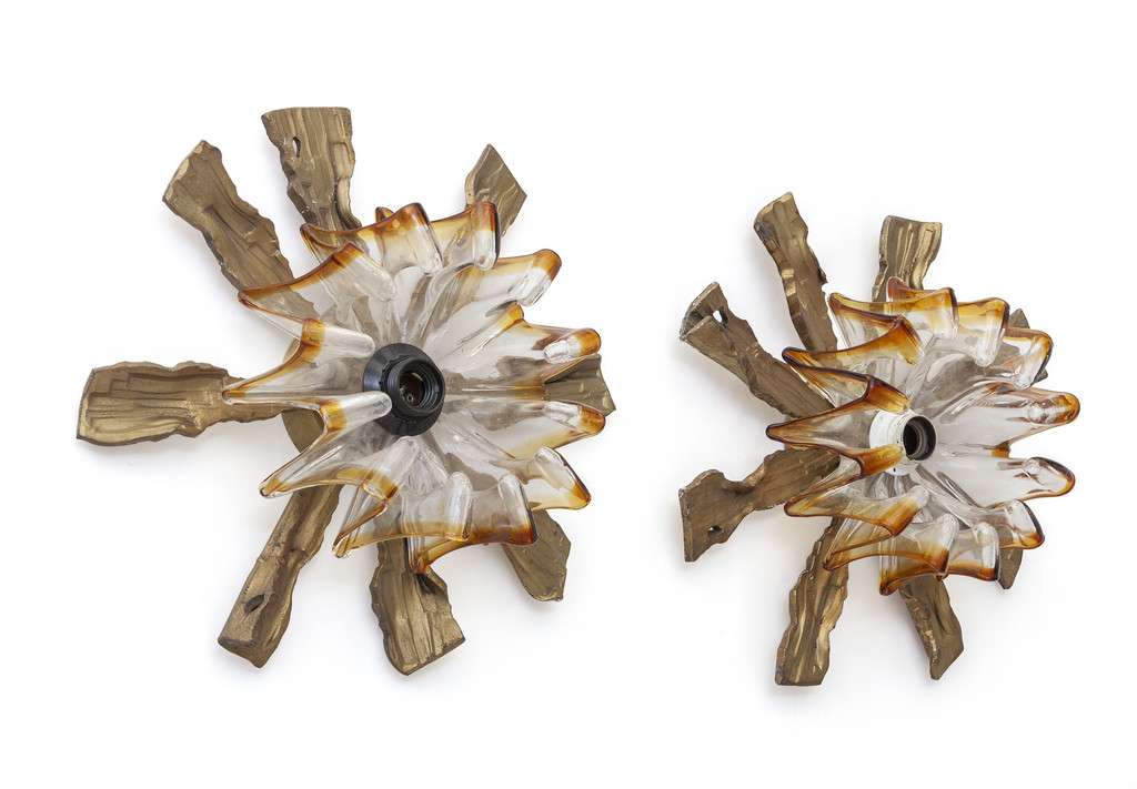 DUE LAMPADE DA PARETE, anni '70. <br>Fusione di