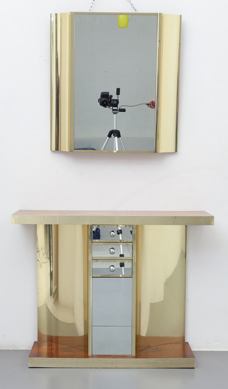 UNA CONSOLE CON SPECCHIERA, anni '80. <br>Ottone