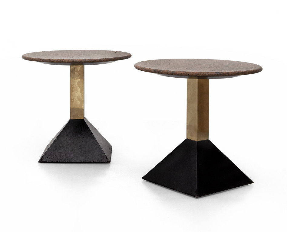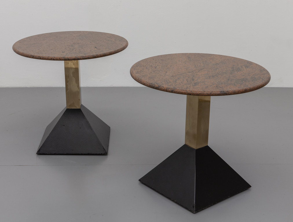Lotto 3464 | DUE TAVOLINI, anni '80. <br>Acciaio verniciato,