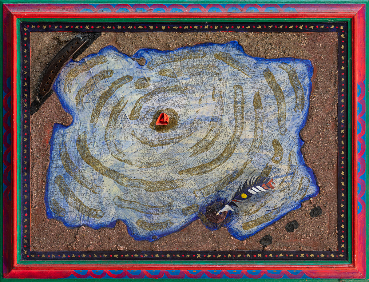 Tecnica mista e applicazioni su tavola e cornice invasa