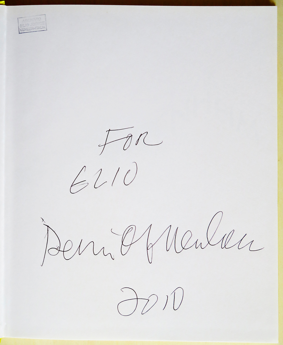 Prestigiosa presenza all'interno del volume del'autografo di Dennis Oppenheim, con dedica ad personam.