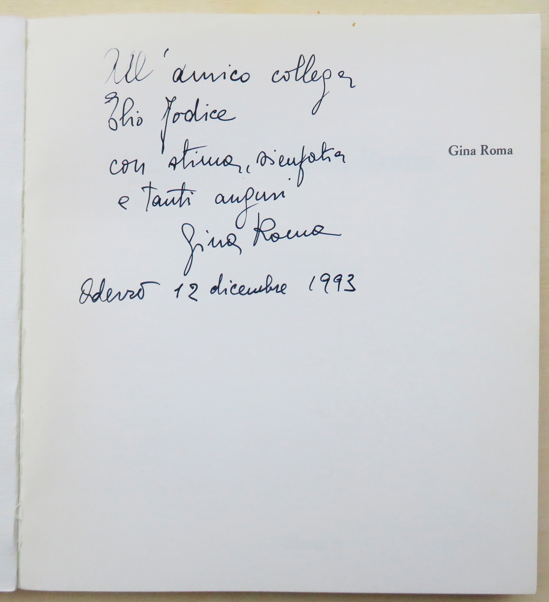 Prestigiosa presenza all'interno del volume dell'autografo di Gina Roma con dedica ad personam e datazione 1993