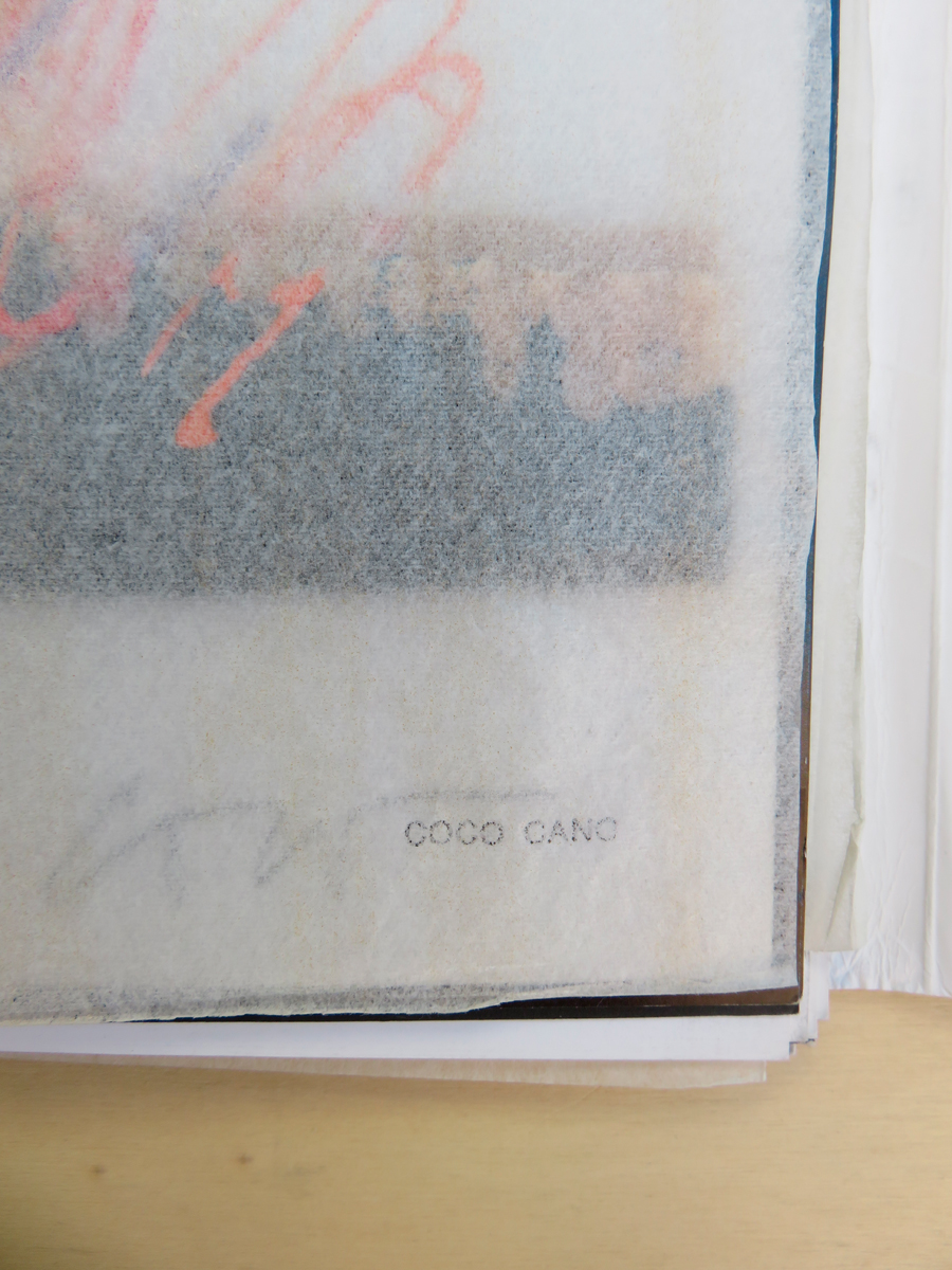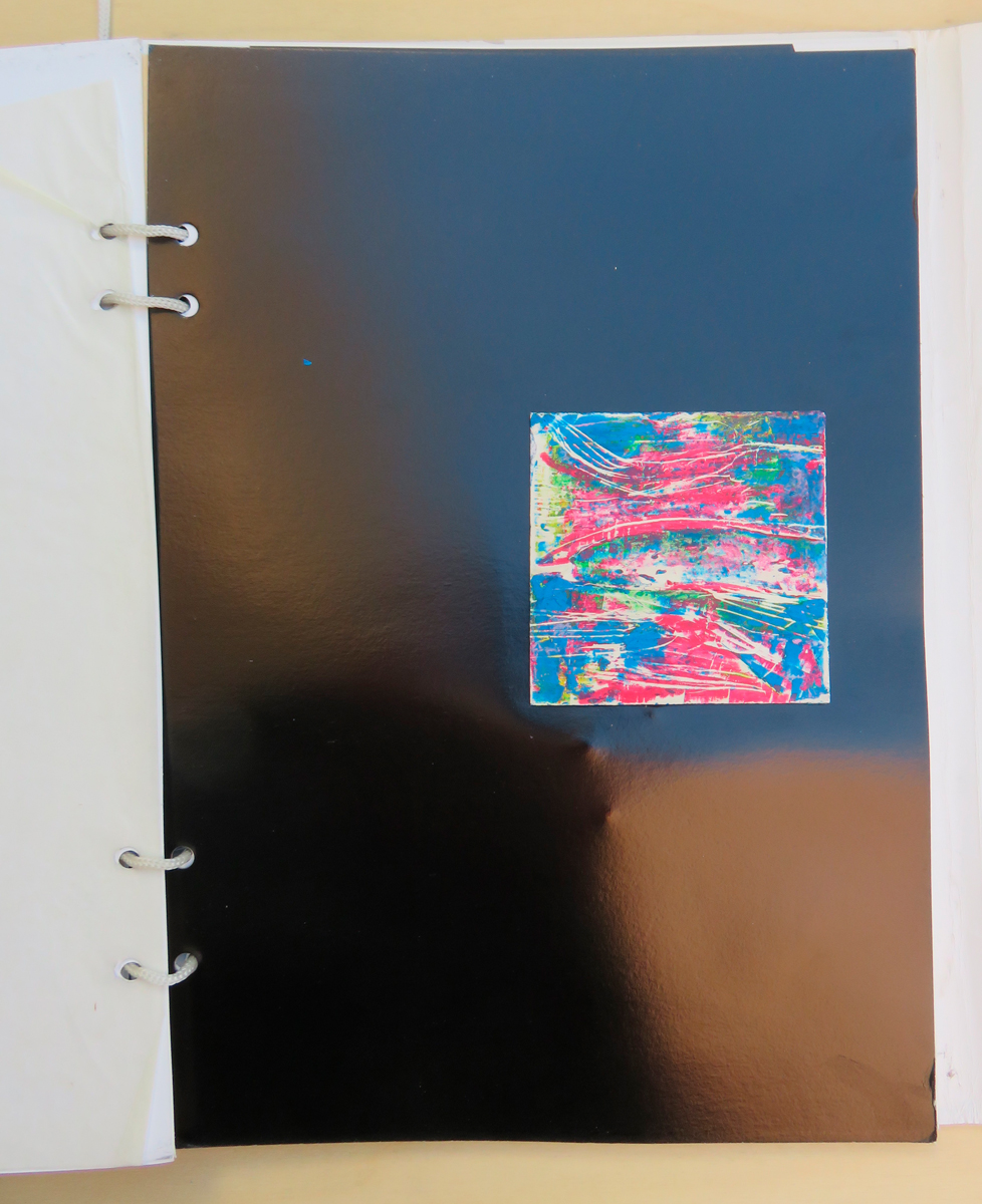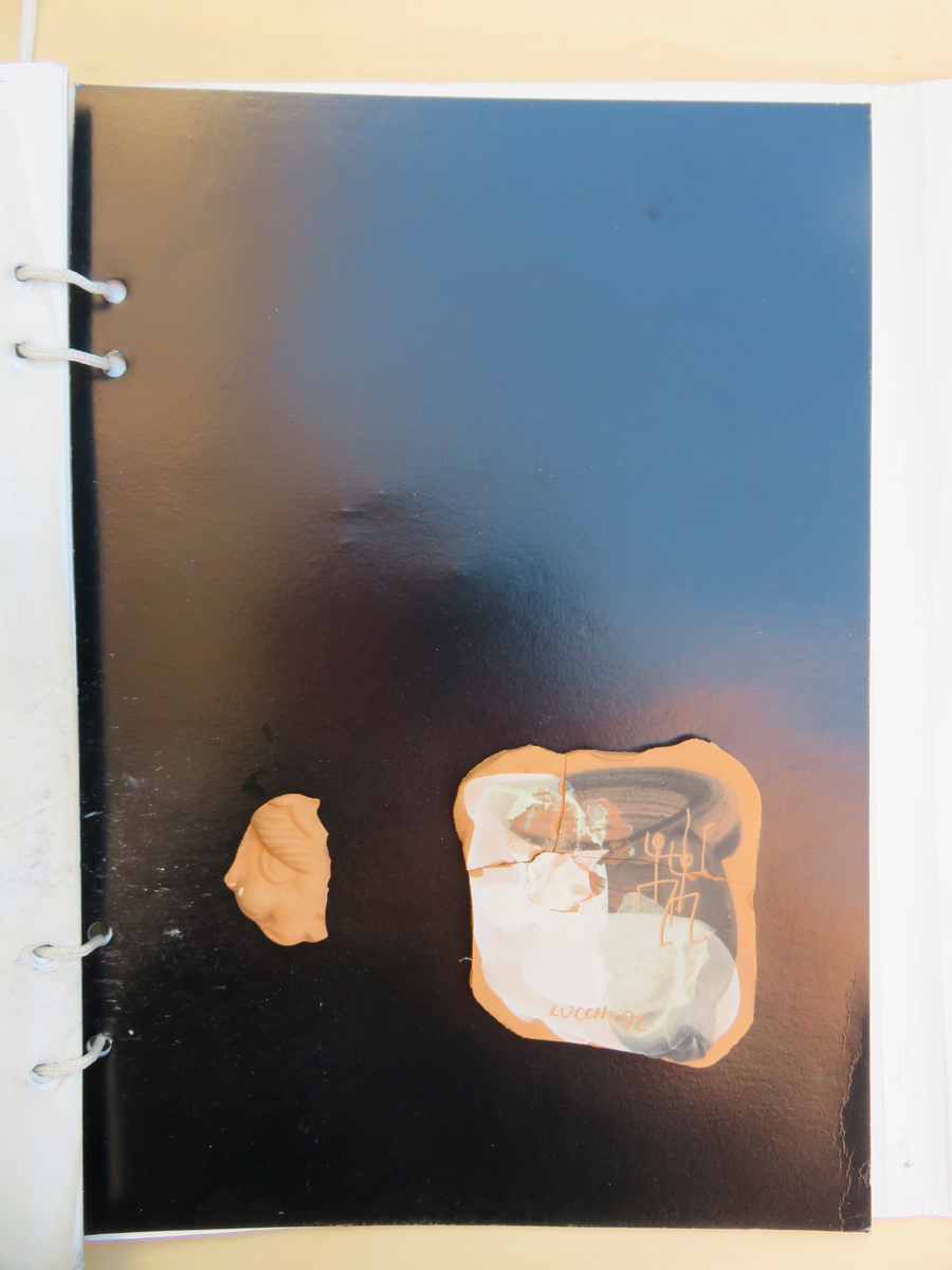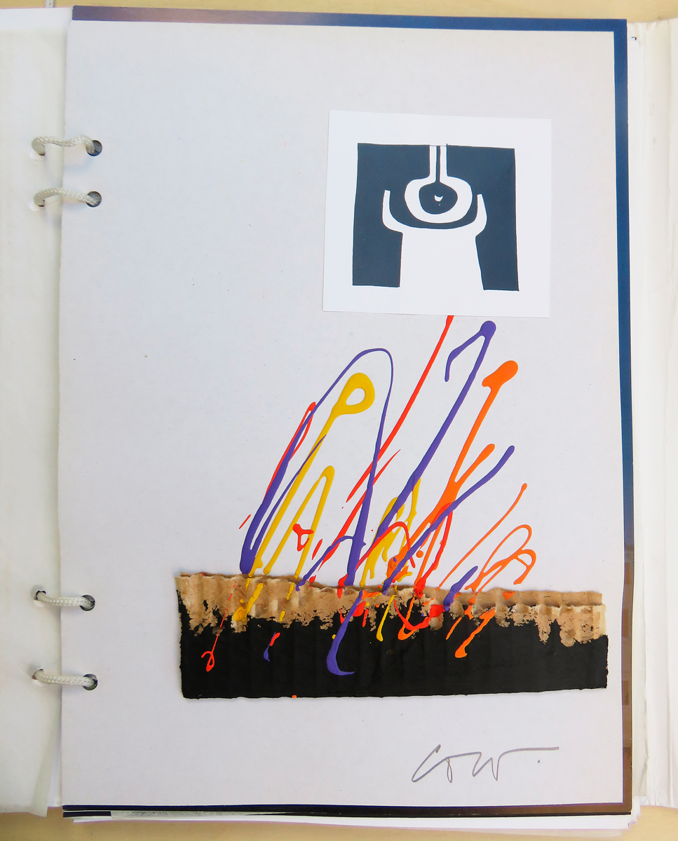 Cartella in cartoncino a 6 facciate, legata e chiusa con cordoncino bianco passante, contenente i seguenti interventi d'artista: Renato Galleris (copertina/offset/collages), Coco Cano (tecnica mista e collage), Alessandro Benfenati (tecnica mista), Michele Lombardelli (tecnica mista), Fabio Berruti (tecnica mista), Anna Seccia (tecnica mista), Bruno Lucchi (ceramica), Bruna Piovesan (poesia “spenta è la notte”). Libro d'artista colettivo in 500 esemplari, numero 227