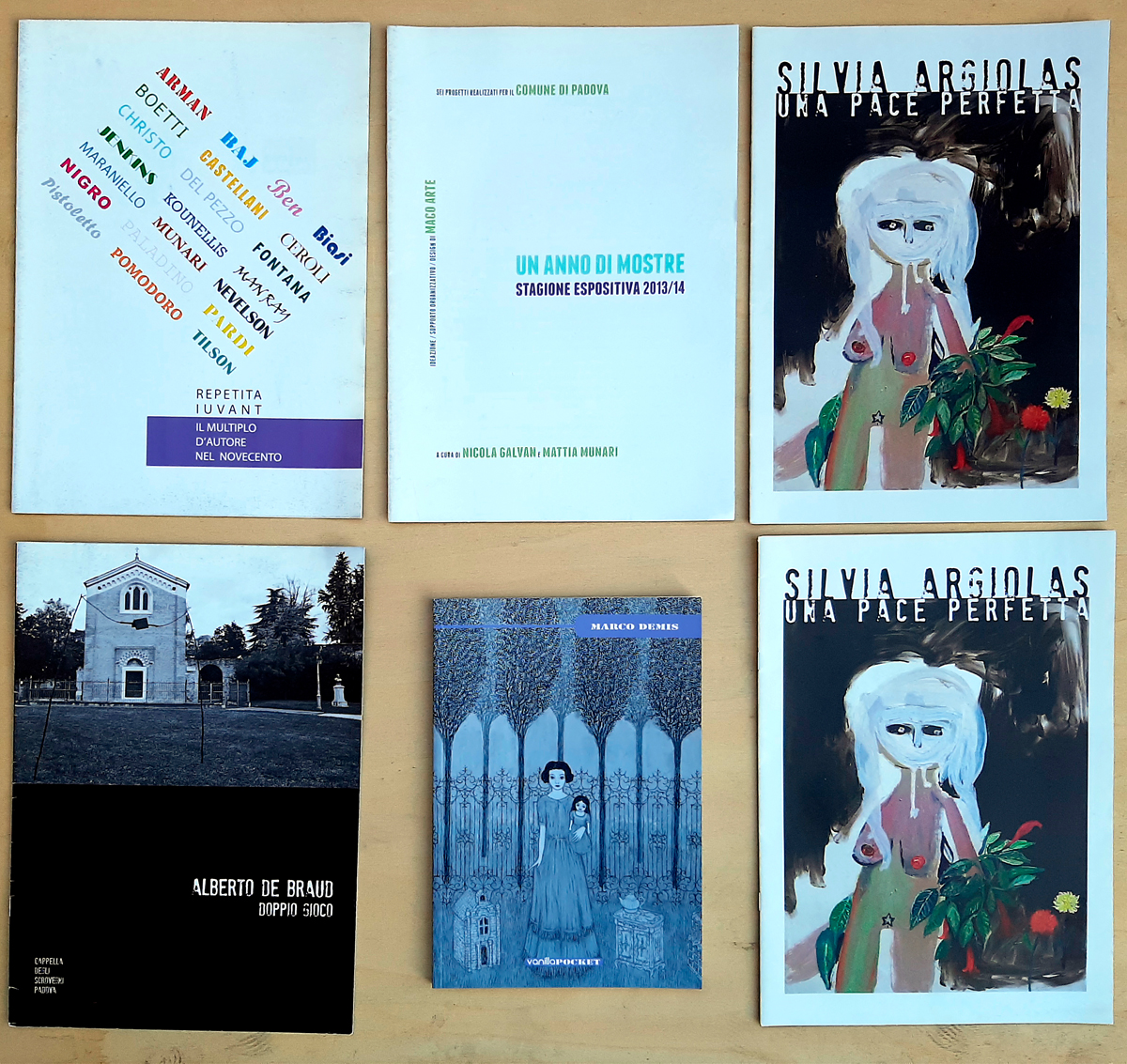 Catalogo relativo a sei progetti realizzati per il comune di Padova, a cura di Nicola Galvan e Mattia Munari, punto metallico, pagine 16, ideazione/supporto organizzativo/design di Maco Arte