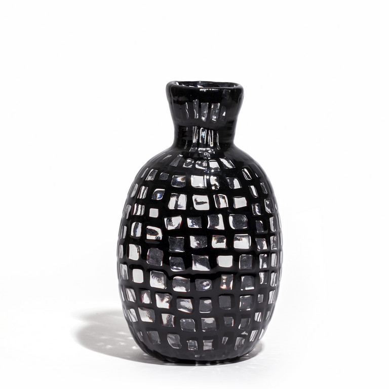 Un vaso 'Occhi' in vetro a murrine nere con nucleo cristallo circa 1960.