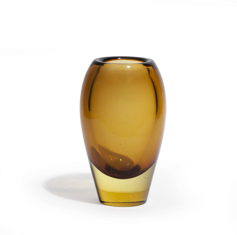 Un vaso in vetro sommerso giallo ambra circa 1960.