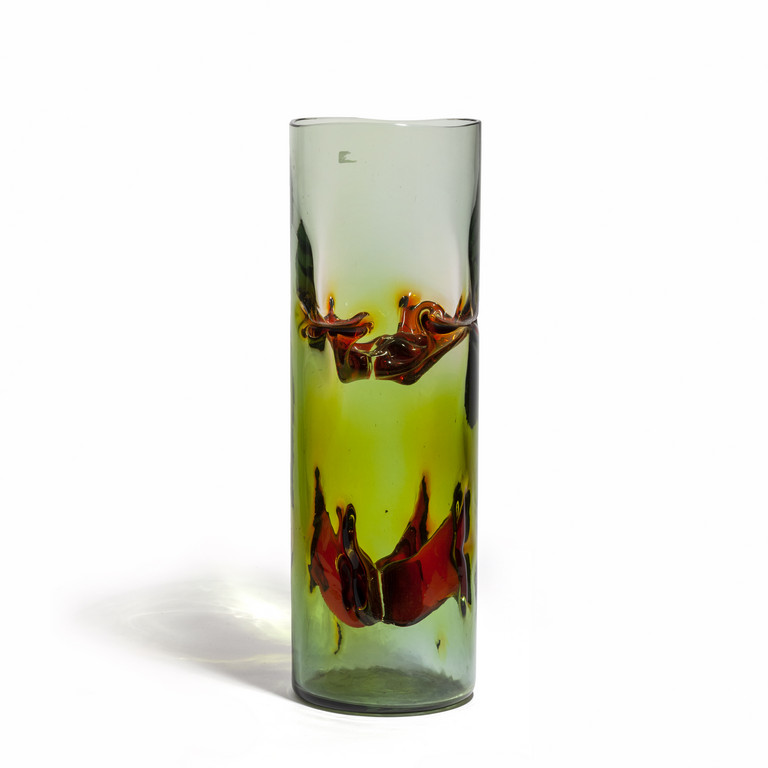 Un vaso in vetro verde con membrane 'autunno' circa 1975.